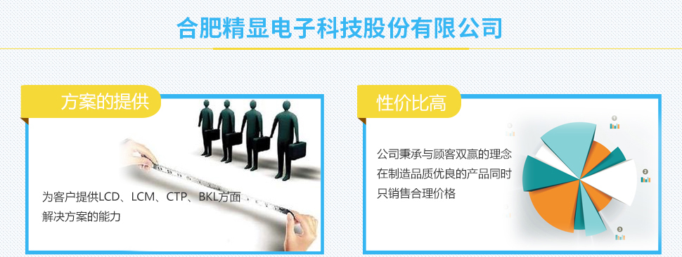 ?合肥精顯電子科技股份有限公司成立于2012年,由液晶行業(yè)知名企業(yè)廈門精顯電子有限公司投資建設,是一家研發(fā)、生產、銷售高品質液晶屏(LCD)、液晶顯示模塊(LCM)、背光(LED)、電容式觸摸屏(CTP)等節(jié)能環(huán)保產品并能為顧客提供解決方案的高新科技企業(yè)。 ?公司占地55畝,擁有建筑面積超過20000平米和潔凈廠房5400平米。 ?公司擁有一個超過15年以上LCD行業(yè)運營制造經(jīng)驗的團隊。 ?公司獲得研發(fā)專利20余項。 ?公司通過C-TPAT認證,ISO9001:2008認證,產品通過了ROHS、REACH。 ?我們產品廣泛應用于智能儀表(水表,電表,氣表)、家電、儀器儀表、計量器械、文教 器具、UPS電源、智能手機機、平板電腦等電子產品的顯示和控制。目前我們已樹立了良好的品牌形象,并與眾多公司(如GE, Ja...更多>